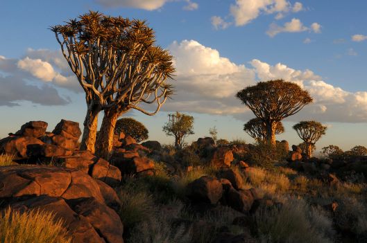 Quiver Tree Forest near Keetmanshoop, Namibia, in the evening, By Hans Stieglitz – Own work, CC BY-SA 3.0, https://commons.wikimedia.org/w/index.php?curid=23314631