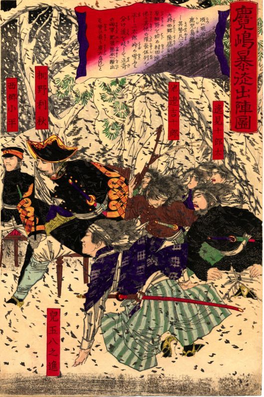 月岡芳年 TukiokaYositosi(1839-1892) – The ukiyoe “鹿児島暴徒出陣図” {{PD}}