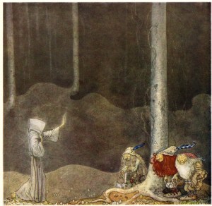 Illustration by John Bauer for ‘Broder Martin’ (Brother Martin) by Emil Eliasson in “Bland tomtar och troll” (Among gnomes and trolls), 1913 {{PD}}