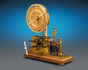 Morse Code receiver and recorder from the late 19th century. Photo By Rauantiques CC BY-SA 4.0