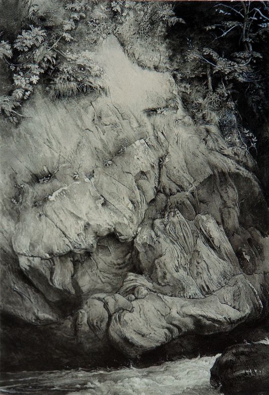 ‘Study of Gneiss Rock, Glenfinlass’ By John Ruskin 1852 {{PD}}
