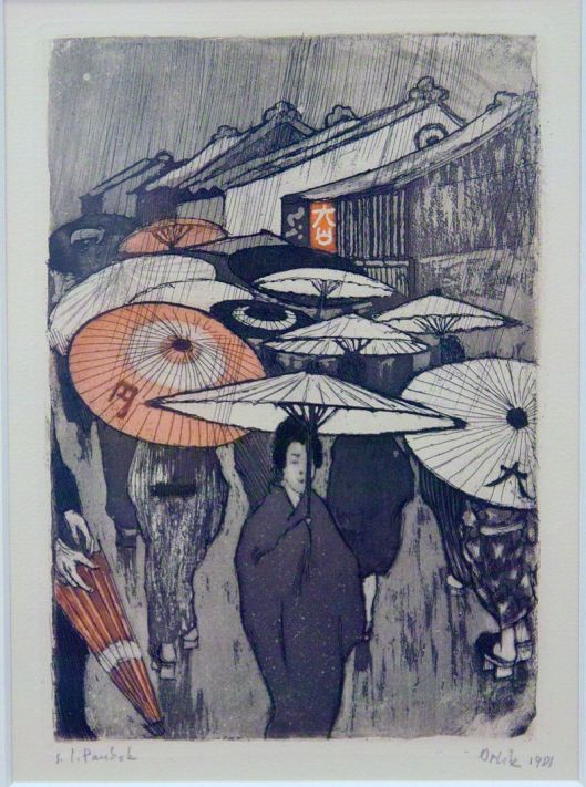 Museum für Kunst und Gewerbe, Hamburg: “Regentag in Kyoto. 1901. bez. s.l. (seinem lieben) Pankok. Farbradierung. Bl. 8 der Mappe aus Japan”. Photo By ArishG CC BY-SA 3.0