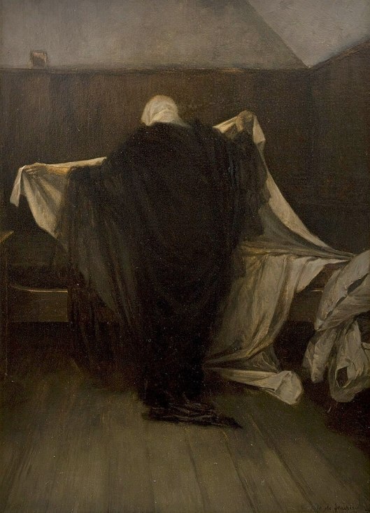 Really, there’s nothing scary in that dark corner. ‘Ukojenie’ By Piotr Stachiewicz c1884 {{PD}}