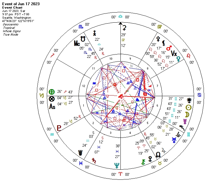 The Sun and Moon meet in the sign of the Twins less than a day before both conjoin Juno–and this, combined with a close square formed to Neptune In Pisces, suggests that our New Moon beginnings may in some form pit the world of words, thoughts, ideas against creative urges and ideals. The aspect formed says that what’s communicated, what we’re thinking, hearing, processing, and probably believing, somehow conflicts with what we consider perfection, in our creations, or in our beliefs. Recognizing this dissonance, though, will be empowering–for how can we create, true to our imaginings, if we don’t recognize the flaws in our thinking?