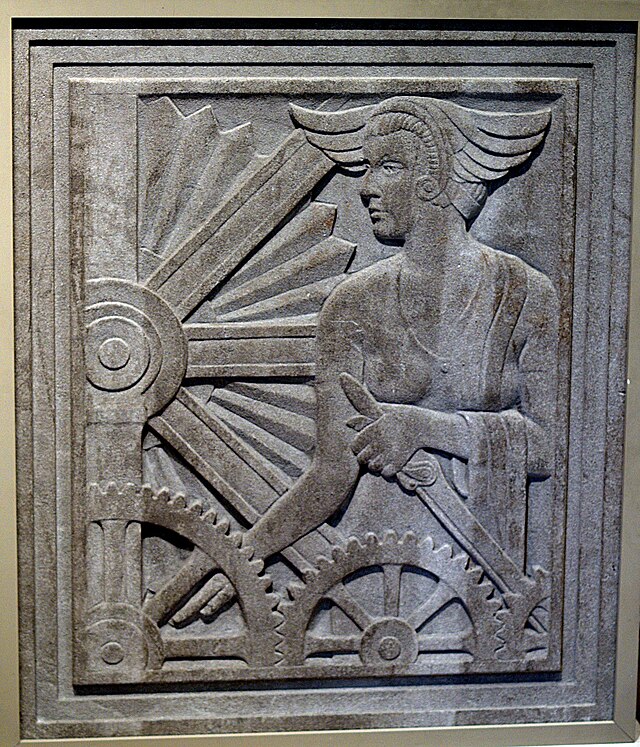 Scipione Del Campo’s Goddess with Gears panel from the 1932 Ogden Avenue Bridge House (Chicago, IL)