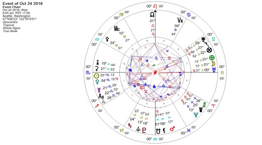 The Full Moon also sextiles Black Moon Lilith in Libra=our emotional perceptions and intuition will be affected by our relationships with others–just how depends on what we’re not acknowledging between us, or what anger one or both of us harbor. We also see a wide trine between the FM and a conjunction of Chiron and Eris in Aries=what comes forward at the Lunar event is, between the involvement of Aries and Leo, definitely centered on ourselves and our Will; this aspect implies at least some of the hurt or healing is triggered by discord inherent in the situation, and that there’s something we can do about it (Fire signs). What upsets are being generated when we act or choose, when we do what we want to do? Others’ reactions to our Self-expression will be instrumental in how this all plays out.