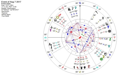 The Partial Solar eclipse in Leo falls at 18 degrees, 41 minutes on August 11th at 2:57 AM PDT. This event is conjoined Pallas—ah! ‘new wisdom’ is the result of the past two events—with the aspects offering a subtle picture of what it is we’ve gained. A new start in Leo is about ourselves and our identity, and those facets of the individuality that allow us to ‘shine’; the aspects made by the eclipse describe the nature of our attributes, the ways in which we can make our uniqueness known. What begins at this time also has an air of the practical about it, or a sense of skills possessed—but no matter what, a situation that allows us to be our Best Self.