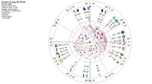 The Full Moon in Pisces perfects on the 26th at 4:56 AM PDT at 3 Pisces 12. It seems to me that all the contact to Uranus and Saturn, with the Full Moon hovering just between at the rough midpoint, suggests a kind of measuring of action v. stasis, revolution v. what’s established, being original or following tradition (and this measuring probably started as early as the 22nd, as every day since has felt like one where our character and conduct was weighed in the balance). In looking at ourselves, we’ve laid the groundwork to look out at what we value, at our relationships, and at what we want–and the Full Moon delivers a conclusion, realization, or makes obvious an ending–then it’s up to us what we do with it.