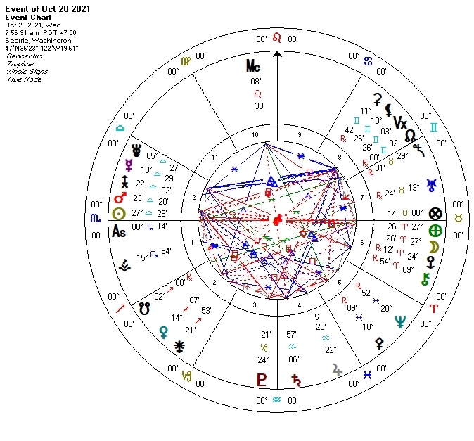 Believe me, the last thing I want to do is add to the current stressful atmosphere, but I have to acknowledge the axiom ‘As Above, So Below’; the Zeitgeist is reflected in the Full Moon situation, and the Lunar picture conveys some specifics about what’s coming at us–and we may find out the disturbing factors aren’t necessarily what we think they are. Just being alive means we can’t avoid the mess of modern life; might as well check the skies for guidance (and if we’re really connecting with the Universe, inspiration).