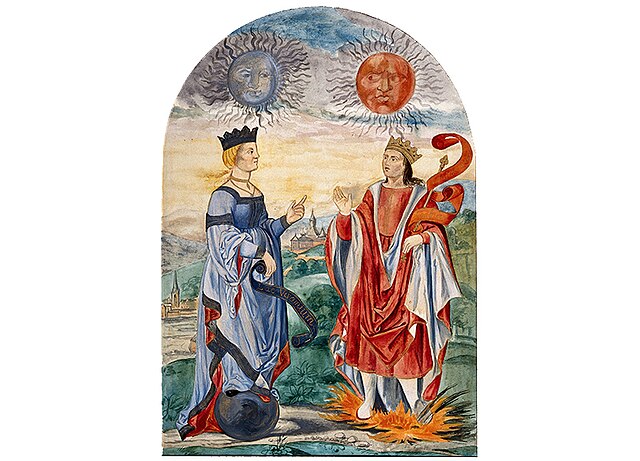 ‘Alchemy – Mercury and Sulfur Personified’ {{PD}}